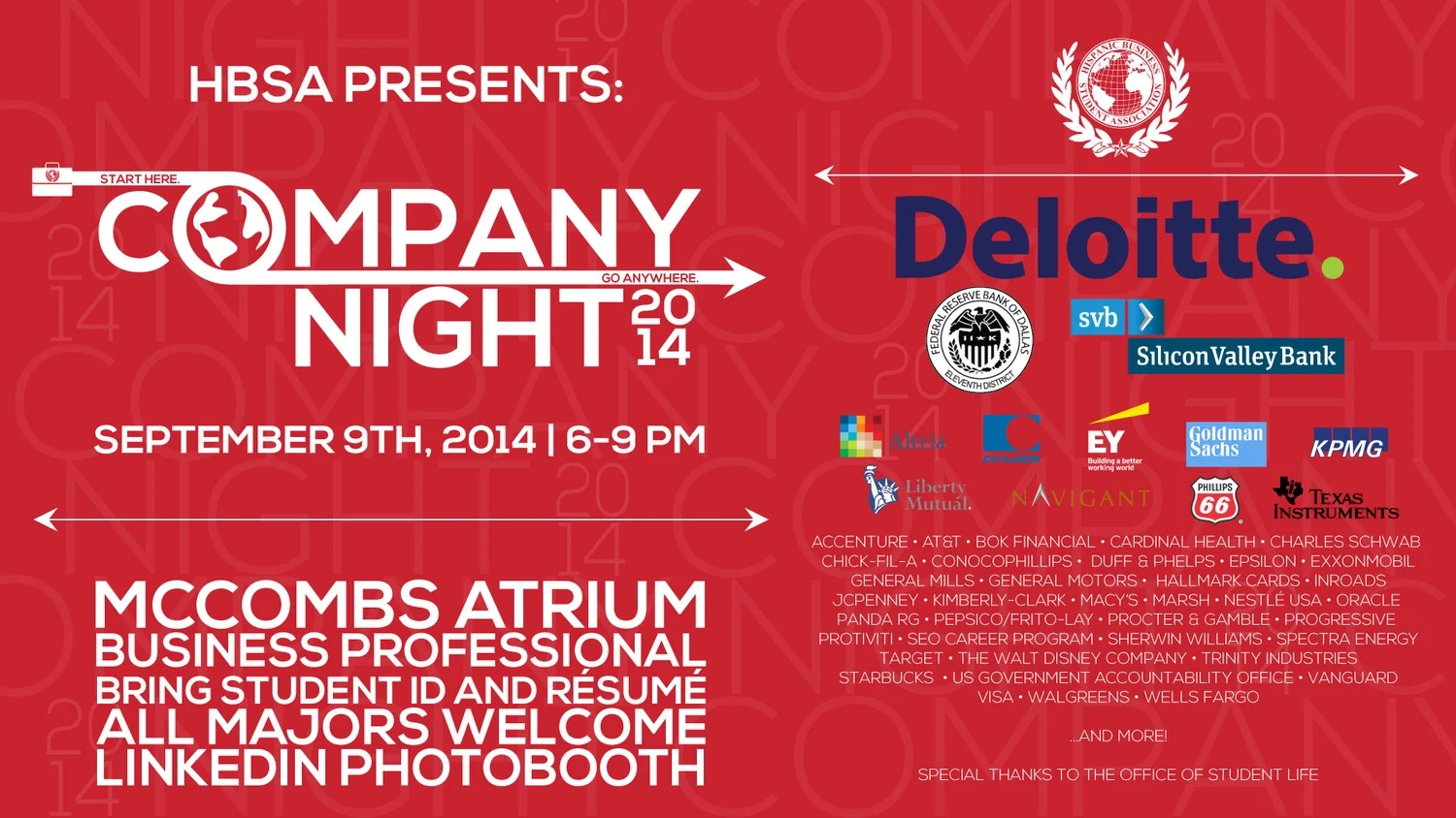 Company Night is one of the largest student-run career fairs at the University of Texas at Austin.